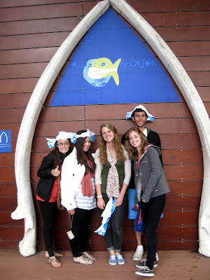 Today we went to the aquarium in Gijon. And I must say, scuba diving is now on my bucket list. I was mesmerized by the fish. I couldn't really get any great pictures of the fish [so just trust me that they're really really pretty], but here are some of us at the aquarium.